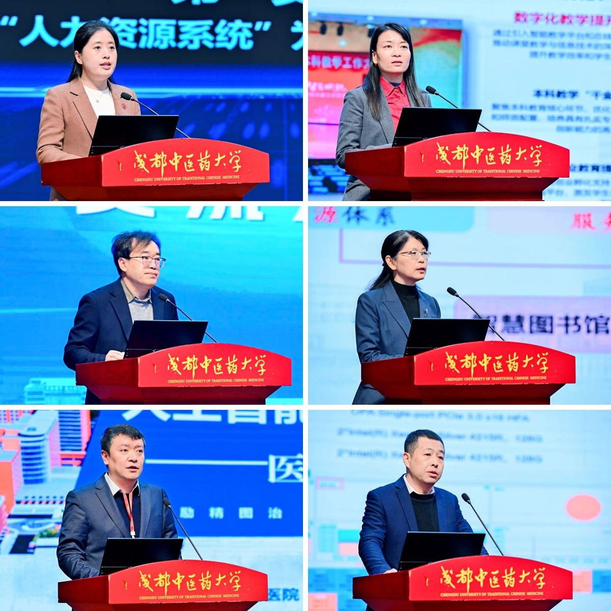 人事处处长戴鸥报告了pp电子人力资源“云平台”的探索与实践历程,介绍了即将上线的数字客服计划,并发布“优师智评教师教学胜任力评价智能体”。教务处处长胡一梅全面梳理学校在数字化教育教学改革的历史历程,展望教育教学数字化改革3.0计划,推动智慧场景在教育教学方面的落地见效。资产与实验室管理处处长卞金辉围绕虚拟仿真实验数智化实验教学平台建设、资源供给和管理创新等方面汇报了学校实验平台数字化建设的工作成效。图书馆馆长赵琼介绍学校通过图书流通、数据贮存、特色资源数据库、一站式资源获取、学术成果全链条查检、数字档案馆等渠道搭建智慧共生服务体系的基本做法。成都市中西医结合医院副院长黄路非报告医院人工智能数字医疗新样态建设的思路措施、建设成效和未来展望。中医药创新研究院陈伟介绍“pp电子官方网站生物信息学高性能计算平台”为校内外各级各类科研项目提供数据支撑和算力支持,在多个科研团队的网站构建与部署,数据与知识驱动的中医药人工智能研究方面取得的显著成效。