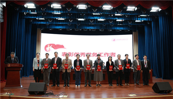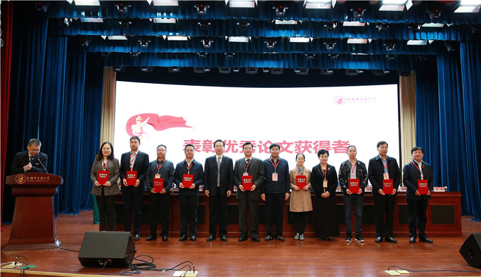 会议还表彰了优秀党务工作者、优秀论文获奖者,27名优秀党务工作者和38名论文一二三等奖获得者上台接受了颁奖。