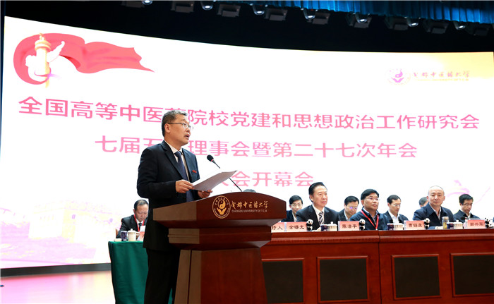 10月15日上午,全国高等中医药院校党建和思想政治工作研究会七届五次理事会暨第二十七次年会在pp电子官方网站隆重举行。这次会议是党的十九大和新时代党的第一次教育大会召开后研究会召开的首次年会,主题是深入学习贯彻习近平新时代中国特色社会主义思想和党的十九大精神,全面加强党的领导,牢牢把握新时代党的建设总要求,以全面提高党建质量为目标,推动全面从严治党向纵深发展。