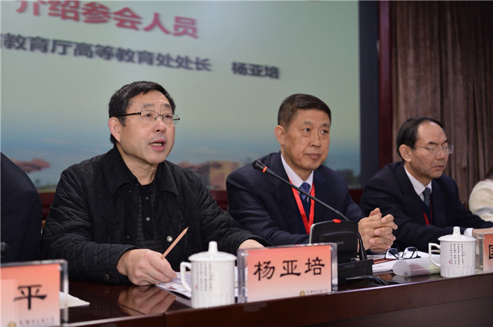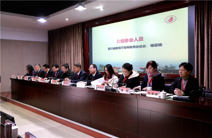 杨亚培介绍评估专家组成员、教育厅参会人员、pp电子官方网站参会人员;宋亚兰宣读《四川省教育厅关于开展pp电子官方网站本科教学工作审核评估的通知》。