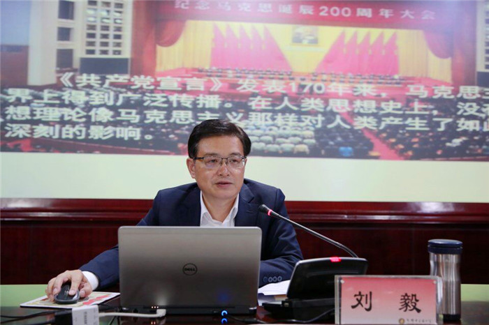 今年是马克思诞辰200周年,《共产党宣言》发表170周年,5月10日下午,学校党委理论学习中心组在行政楼五会议室召开主题为“感悟马克思主义真理 坚定马克思主义信仰”的专题学习会。党委中心组全体成员、正处级领导干部在中心组组长、党委书记刘毅和马克思主义学院青年教师雷虹艳的带领下,重温马克思主义经典著作,领会马克思主义的时代意义和现实意义,坚定自身马克思主义信仰。