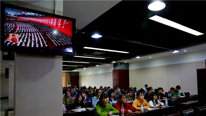 10月18日上午9时,中国共产党第十九次全国代表大会在北京人民大会堂隆重举行,pp电子校领导、副处级以上领导人员、学生代表600余人怀着激动的心情,分别在百会堂、行政楼五会议室集中收看了大会盛况,聆听了习近平总书记代表第十八届中央委员会向大会所作的题为《决胜全面建成小康社会 夺取新时代中国特色社会主义伟大胜利》的报告。校内各学院、部门师生也采取多种形式积极收听收看了大会开幕式。