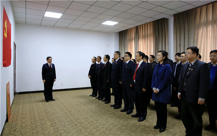 随后,举行重温入党誓词仪式。全体委员面对党旗,举起右拳,庄严宣誓,刘毅领誓。