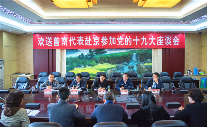 中国共产党第十九次代表大会即将于10月18日在北京隆重召开,pp电子药学院中药药理系主任曾南教授当选为十九大代表将参加盛会。10月13日下午,学校举行座谈会,热烈欢送曾南代表赴京参会。学校党委书记刘毅,副校长彭成,校党政办公室、党委组织部、党委宣传部、人事处、药学院负责人以及曾南教授所在党支部书记参加会议。