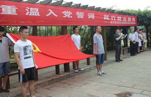 药学院党委举行“重温入党誓词、践行群众路线”纪念建党93周年主题活动 发布时间:2014-06-23 10:38:00 浏览次数: 次 【字体:小 大】 6月19日,药学院党委举行了“重温入党誓词,践行群众路线”纪念建党93周年主题活动,党委组织部副部长杨胤清、学院全体学生党员参加宣誓活动。活动现场,学院党委书记王军领誓、全体党员庄严宣誓,重温了神圣而光荣的时刻;全体党员合唱《国际歌》,庄严嘹亮的歌声振奋人心,表达了药学院全体学生党员将牢记入党誓词、坚定理想信念,勤奋学习,勇于奉献,为祖国的繁荣昌盛奋斗终身的决心。 (药学院) 【打印正文】 上一条:学校举行2014届校友联络员聘任仪式 下一条:药学院党委举行“重温入党誓词、践行群众路线”纪念建党93周年主题活动