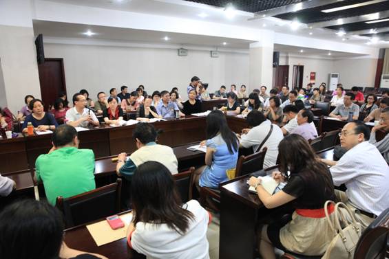 6月4日下午,2014年“教学质量提升月”活动之“解剖组胚系教学研讨全校公开示范活动”在温江校区五会议室举行。学校党委书记马跃荣,副校长刘旭光,学校教学督导组组长祝彼得教授、督导组专家刘绍唐教授,党委宣传部部长赖玉萍,教务处处长王飞、副处长王明谊,各学院主管教学的院领导、教学科科长、部分教研室主任和青年教师,基础医学院全体院领导和教学督导专家、解剖组胚系全体教师出席教学研讨活动。教研活动由王飞和解剖组胚系主任许勇教授共同主持。