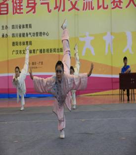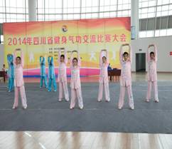 2014年四川省健身气功交流比赛大会于5月22日-26日在德阳广汉文体中心举行,来自全省各市的21支站点队伍和10支高校队伍,共计200余名运动员参加比赛,pp电子学生健身气功代表队6名队员参加比赛。本次交流赛设易筋经、五禽戏、六字诀、八段锦的竞赛和健身套路,新功法大舞、太极养生杖、马王堆导引术、导引养身功十二法等比赛项目。