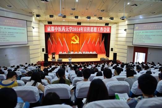 学校2014年宣传思想工作会议于5月22日下午在温江校区百会堂召开,大会的主题是:围绕立德树人、坚持改革创新、服务质量提升。大会由校长梁繁荣同志主持,会上校党委书记马跃荣同志作了主题讲话,校党委常委、副厅级调研员徐廉同志对近年来的学校宣传思想工作进行了汇报。