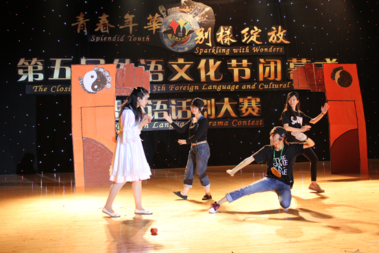 5月8日晚,外语学院第五届外语文化节闭幕式暨外语话剧大赛在百会堂演播厅举行。四川省文化馆数字化中心主任刘蔚、西南财经大赛经贸外语学院副院长盛敏,pp电子外语学院副院长叶立霜、英语专业教研室李永红和外教刘远帆担任比赛评委。本次比赛共有7个代表队参赛,各代表队用不同的风格完美演绎话剧,让现场观众感受到不一样的青春风采。经过角逐,来自临床医学院的代表队凭借话剧《Before I Go to Sleep》的精彩演绎摘得桂冠。