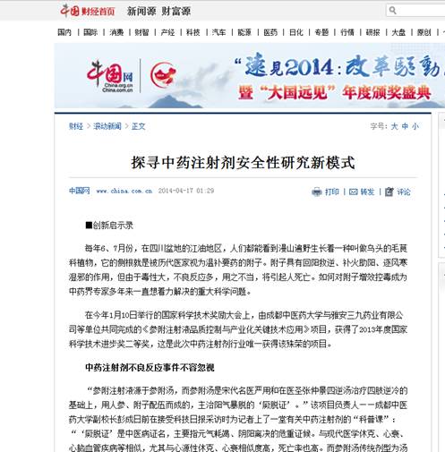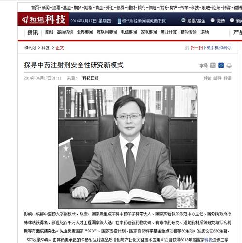 《科技日报》关注pp电子中药科研新模式 发布时间:2014-04-17 13:54:00 浏览次数: 次 【字体:小 大】 中药材附子增效控毒是中药界专家多年来致力解决的重大科学问题,由学校副校长、国家级重点学科中药学学科带头人彭成教授负责承担的《参附注射液品质控制与产业化关键技术应用》项目获得了2013年度国家科学技术进步奖二等奖,也是本年度中药注射剂行业唯一获得该殊荣的项目。 获奖公布后,国家、省市各级媒体频频聚焦pp电子科研工作。今日,科技日报第9版专访学校副校长彭成教授,对该项目探寻中药注射剂安全性研究新模式和取得的重大成就做了全面报道。凤凰网、中国网、和讯网等网络媒体第一时间转载。 (宣传部 王其奇) 【打印正文】 上一条:临床医学院田径传保运动会举行 师生同场赛团结 下一条:pp电子多名专家参加 “十二五”规划教材编写定稿会议