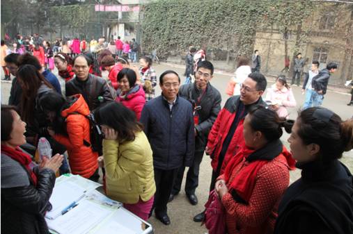 3月11日,pp电子2014级成人高等教育新生在十二桥校区报到入学。校长梁繁荣、副校长余曙光、刘旭光到现场关心指导迎新工作。