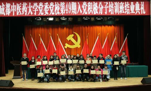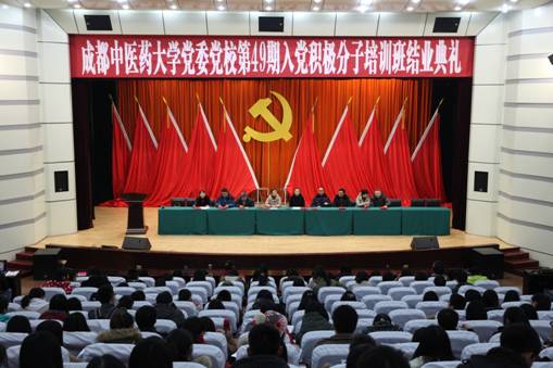 1月7日,学校党委党校在温江校区百会堂举行了第49期入党积极分子培训班结业典礼。学校组织部、党校办公室负责人,分党委、党总支负责人以及培训班工作人员出席大会。党校办公室副主任罗萍主持结业典礼。300多名入党积极分子学员代表参加。