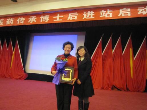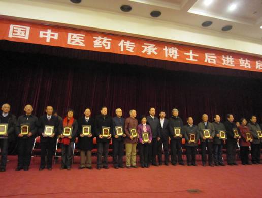 会议期间,国家卫生和计划生育委员会副主任、国家中医药管理局局长王国强为全国中医药传承博士后导师代表郭子光等授牌,并举行了庄严的博士后拜师仪式。李炜弘、路雪靖两位博士后分别向自己的导师郭子光、廖品正教授深深地鞠躬致意并敬献鲜花。其后王国强局长做了重要讲话,他指出:学术传承是中医药永恒的主题和发展的基石。国家中医药管理局高度重视中医药学术传承博士后工作,这是国家首次将中医药学术传承工作与国家博士后制度结合起来,是高层次中医药传承人才培养新途径与新措施的积极探索,对中医药传承有不可替代的重要意义和示范作用,各级组织管理部门、导师、博士后要各司其职、各尽其责把这项工作扎扎实实地开展好、落实好。通过遴选优秀博士进入中国中医科学院博士后流动站工作,不再是简单的一方一药的传承,而是强调在传承研究名老中医药专家实践经验基础上,继承发展名老中医药专家的学术思想与学术成就,传承要上升到学术思想的高度,目的就是培养造就一批高层次中医药人才。他同时给博士后提出了四点要求和殷切期望:认真研读经典,夯实基本功;加强跟师实践,临床与科研相结合;注重悟性培养,提高思辨能力;注重医德医风,弘扬“大医精诚”。