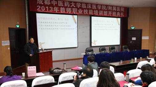 高林远讲话表示,四川省高校师资培训中心和pp电子官方网站共同举办此次培训班的目的就是要紧紧围绕培养高素质新型医学人才这个核心,通过培训和交流完善临床带教老师的自身素质,提高带教水平。他指出,省高校师资培训中心首次举办一线骨干医务工作者教师职业技能专题培训班是改革培训模式,拓宽培训渠道的大胆尝试,本次培训采取送培到校的培养方式,也是扎实推进党的群众路线教育实践活动,加强中心服务意识,提高服务质量,深入基层开展培训的一项具体措施。高林远希望学员要珍惜机会,克服困难,集中精力,加强交流探讨、取长补短、共同提高;要自觉遵守培训中心管理规定和纪律要求,服从安排,以饱满热情圆满完成学习任务;要在今后教育教学工作中,解放思想、勇于创新、开拓进取,为我省高等教育事业和医药卫生事业改革发展做出更大贡献。