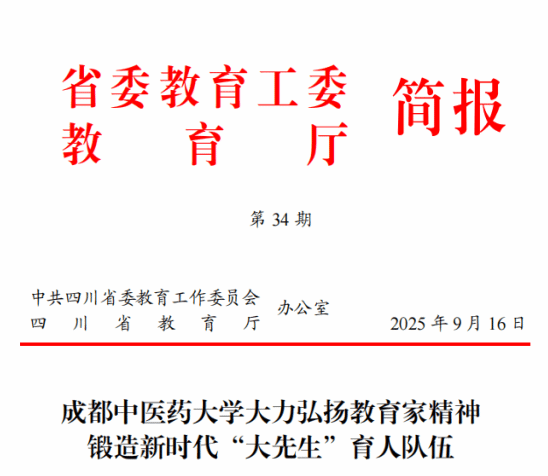 9月16日,《省委教育工委 教育厅简报》第34期刊登了pp电子弘扬教育家精神的经验分享——pp电子官方网站大力弘扬教育家精神锻造新时代“大先生”育人队伍。