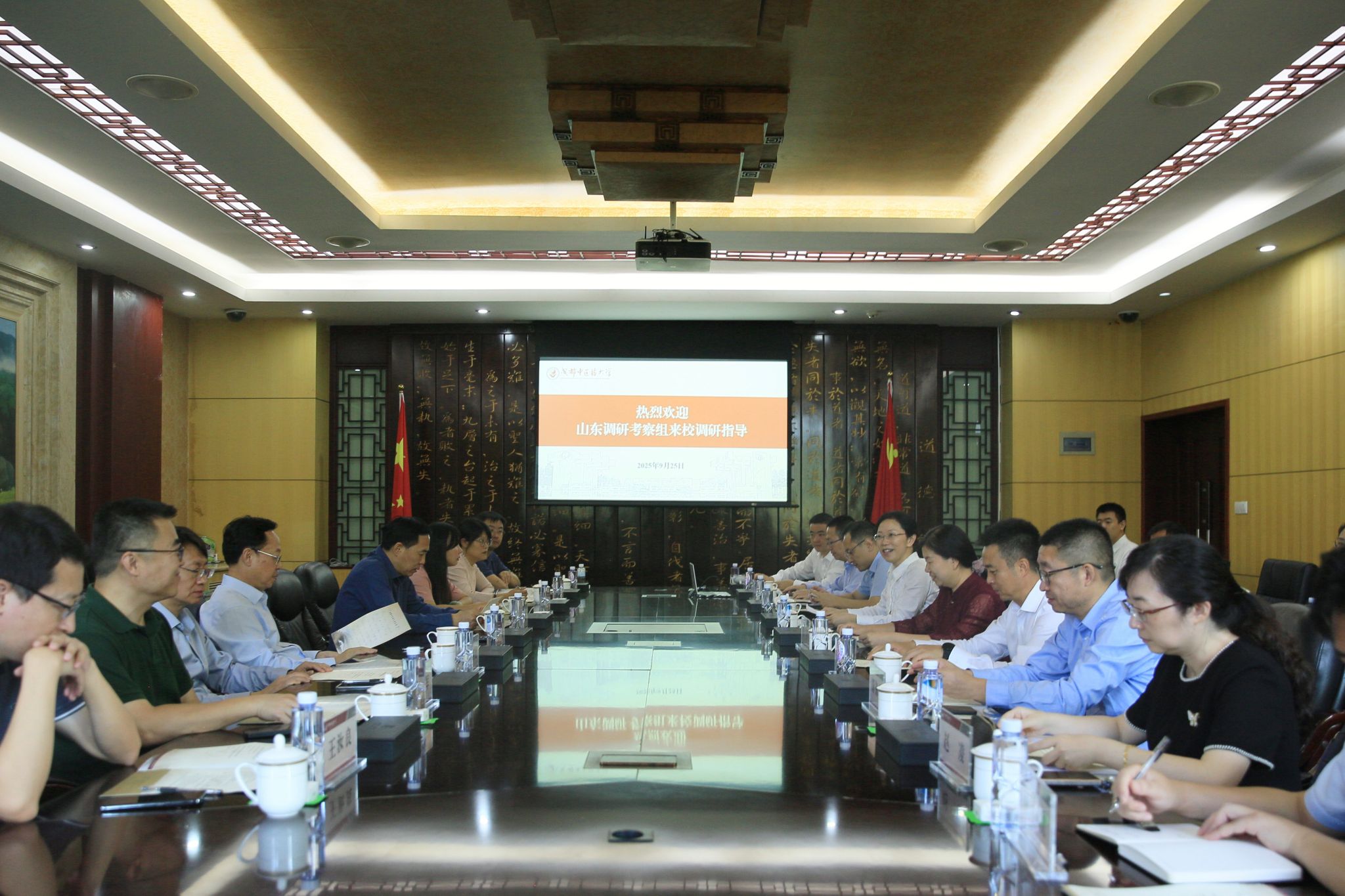9月25日,山东省政协副主席、山东省党外知识分子联谊会会长刘均刚,山东省委统战部副部长孙中亮,山东省政协常委、山东中医药大学校长李可建一行8人,围绕“加强黄河流域省份中医药传承创新工作,推进黄河流域省份协同高质量发展”主题到pp电子调研考察。四川省委统战部二级巡视员黄永明,学校校长曾芳,党委副书记杨静,副校长、临床医学院/附属医院党委书记(兼)郑川,副校长国锦琳陪同调研。