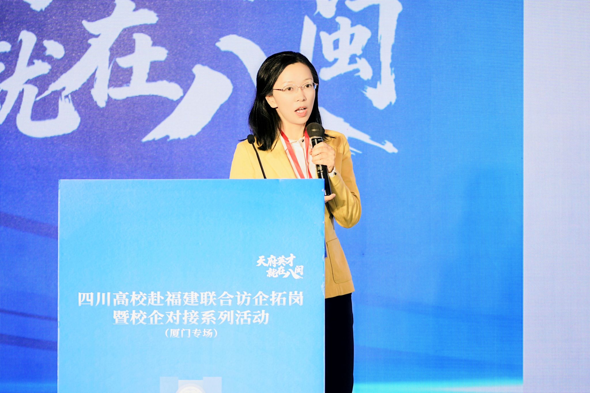 10月20日,厦门专场推介会举行,四川省40所高校及厦门市60余家企业代表到场参会。作为四川省3所推介高校之一,杨静在大会作学校推介发言,她系统介绍了pp电子厚重的办学历史、学科专业人才优势、国家级教学科研临床平台建设、人才培养成效、就业育人等情况,全面呈现了学校的教学、科研、医疗、人才、文化、服务社会等状况及合作愿景,希望此次来闽与福建医药健康领域相关单位深化合作,并邀请福建省用人单位来校选才,助力健康中国与中医药事业高质量发展,获得在场用人单位高度关注。