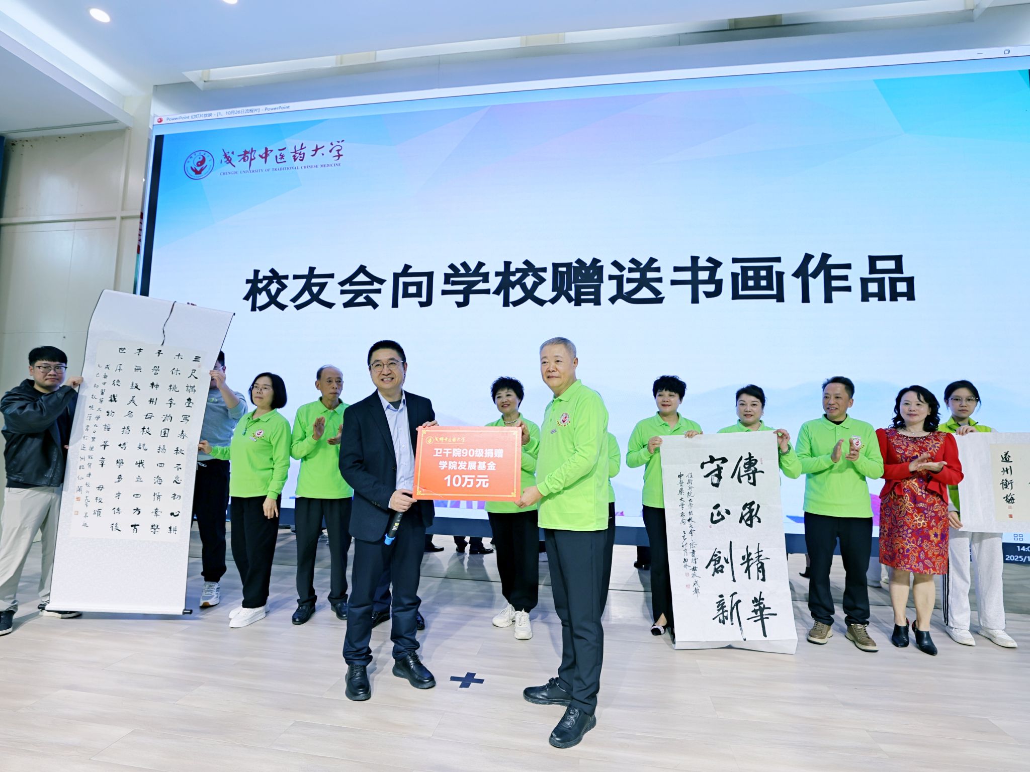 会前,1990级校友捐赠石碑仪式圆满举行。石碑上镌刻着“芳华卫干院 心系成中医”的鎏金字样,将永久矗立于温江校区,让校友情怀与校园岁月绵绵长存。
