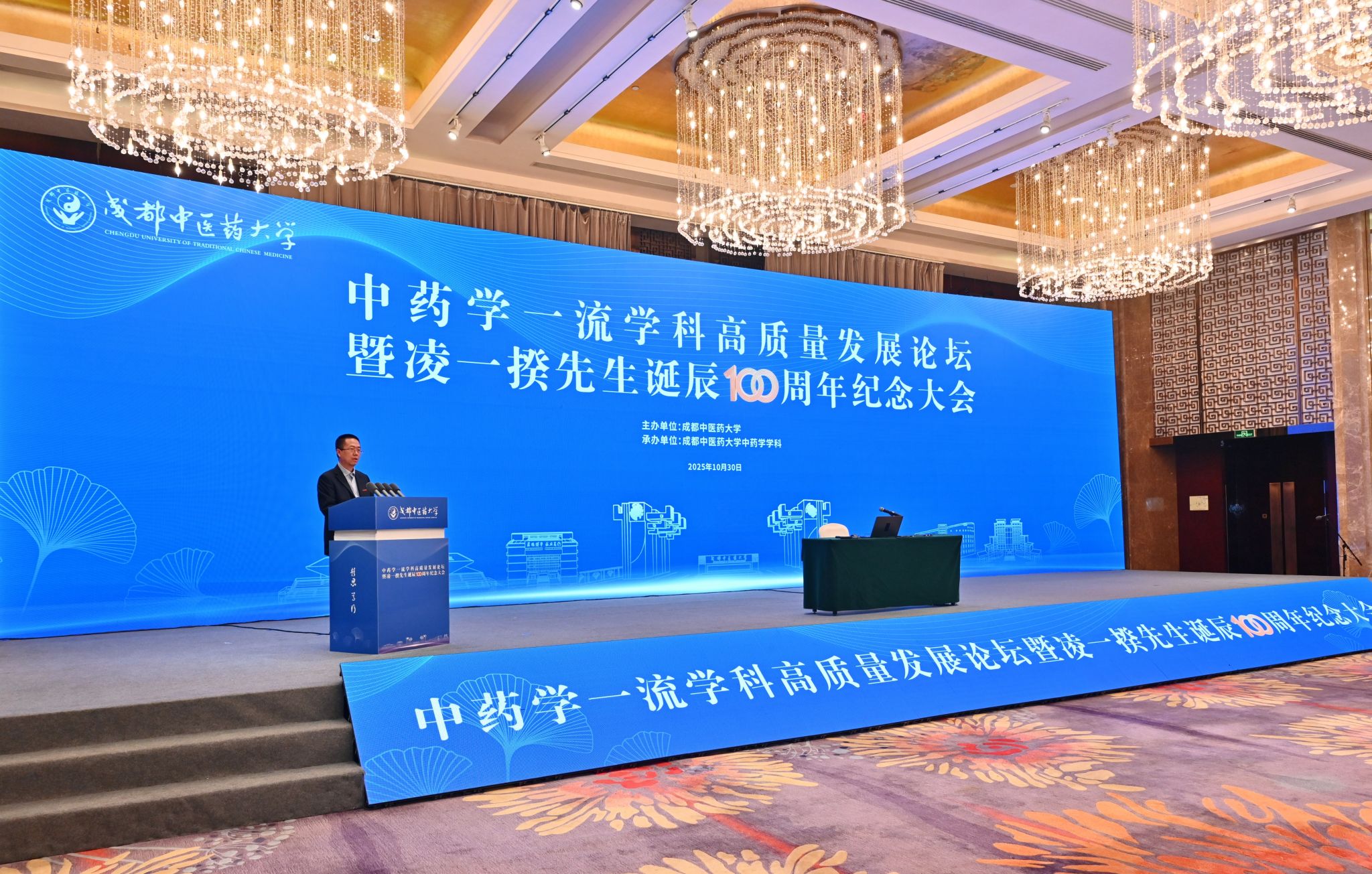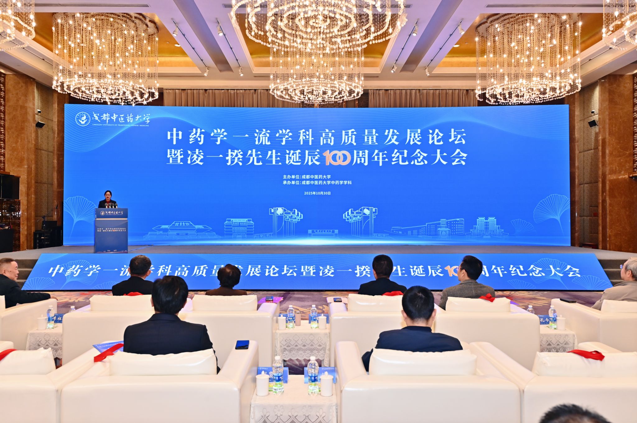 10月30日,在pp电子官方网站建校70年倒计时一周年之际,中药学一流学科高质量发展论坛暨凌一揆先生诞辰100周年纪念大会隆重召开。来自全国中医药领域的专家学者、校友代表及师生齐聚蓉城,共同致敬中药学高等教育奠基者凌一揆先生,共商中药学一流学科高质量发展路径。开幕式由药学院党委书记胡媛主持。