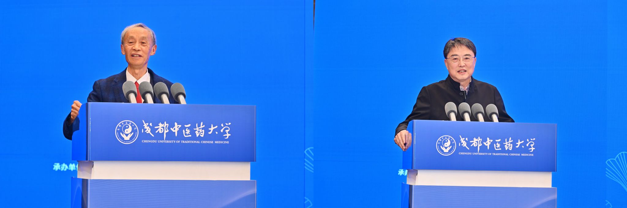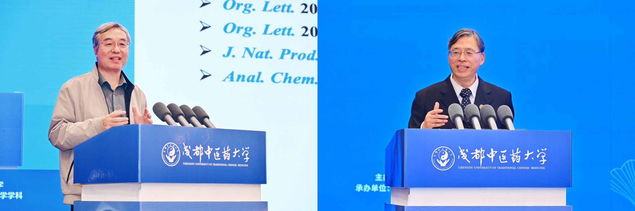 主旨报告环节由南京中医药大学原副校长、南京大学医药生物技术全国重点实验室主任谭仁祥教授和广州中医药大学副校长刘中秋教授主持。中国药科大学原党委常委、副校长孔令义教授以《若干天然产物与作用靶点研究》为题,从复杂结构天然产物化学成分、结构修饰与成药性研究以及潜在药物新靶点与天然活性分子的发现三个方面,结合具体研究案例和实验成果,指出天然药物对人类健康保障具有极为重要的作用。中国医学科学院学部委员、岐黄学者、杭州师范大学国家高水平学科治未病与健康管理学科带头人谢恬教授以《中西医结合“分子配伍”理论创制新药的医教研实践》为题,结合其个人经历、研究成果与教学实践,以团队研发的全球首个基于分子配伍理论的抗癌新药“榄香烯脂质体系统”为例,深入阐释了分子配伍理论在抗肿瘤药物研发领域所实现的关键突破。北京中医药大学中药学院院长雷海民教授以《中国梦 中国医 中国药》为题作报告。他以“中国梦”为引,指出中医药工作者应心怀使命,深入发掘中医药宝库,并通过“中国医”与“中国药”的研究实例,系统解析中医药现代化研发的创新路径。国家“双一流”建设学科中药学学科带头人、国家级教学名师、pp电子官方网站原副校长彭成教授以《中药种质资源多元保存多维评价及产业化关键技术研究》为题,剖析中药种质资源创新应用亟待突破的挑战,深度解读创新中药种质资源多元保存体系,创建中药种质资源外在品质、内在品质、性效品质多维评价方法和产业化关键技术突破、产业转化路径及学科发展现状。