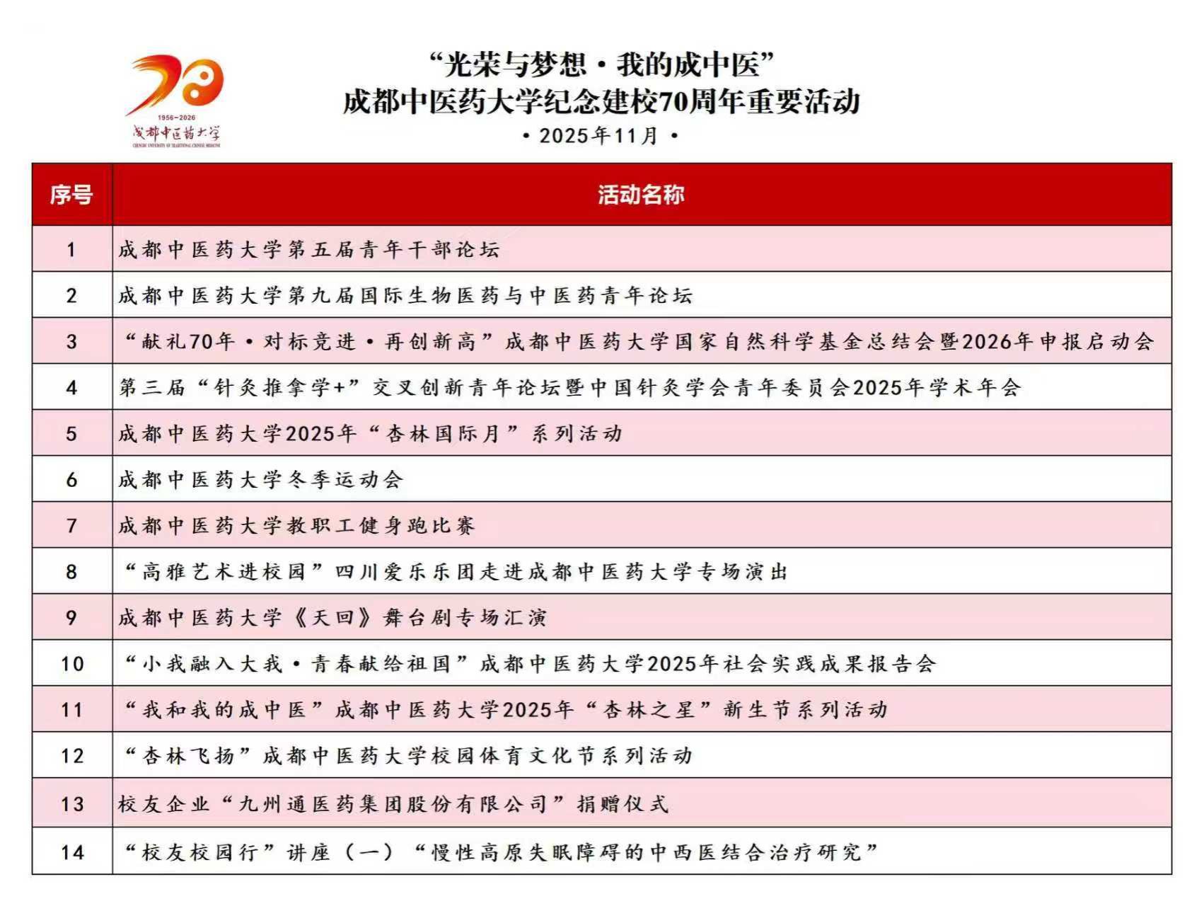 【校庆专题】纪念建校70周年重要活动(11月) 发布时间:2025-11-03 19:08:55 浏览次数: 次 【字体:小 大】 【打印正文】 上一条:“光荣与梦想”|高雅艺术进校园——四川爱乐乐团走进pp电子官方网站专场演出成功举行 下一条:pp电子成功承办2025年四川省教育系统内部审计培训班