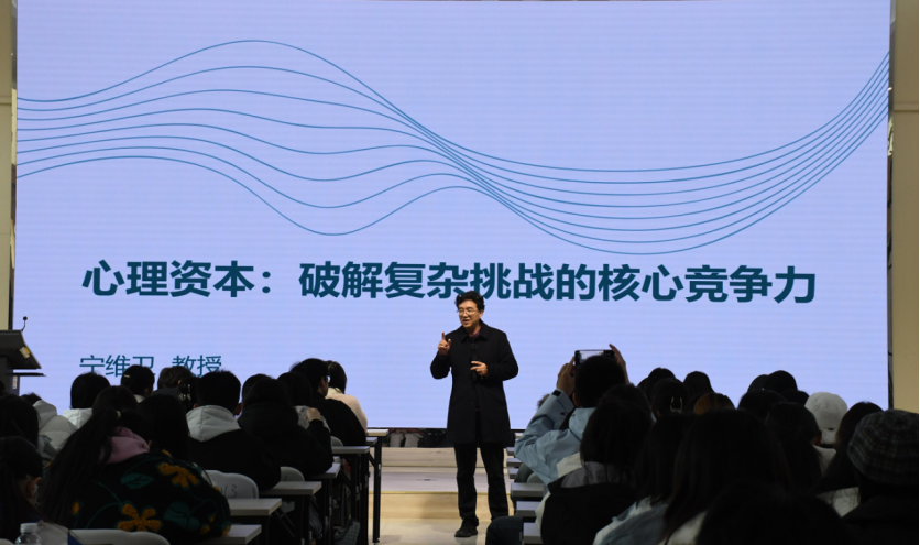 活动期间,宁维卫教授以“心理资本:破解复杂挑战的核心竞争力”为题开展了学术讲座。讲座采用线上线下同步形式,吸引 500 余人参与观看,现场互动热烈。