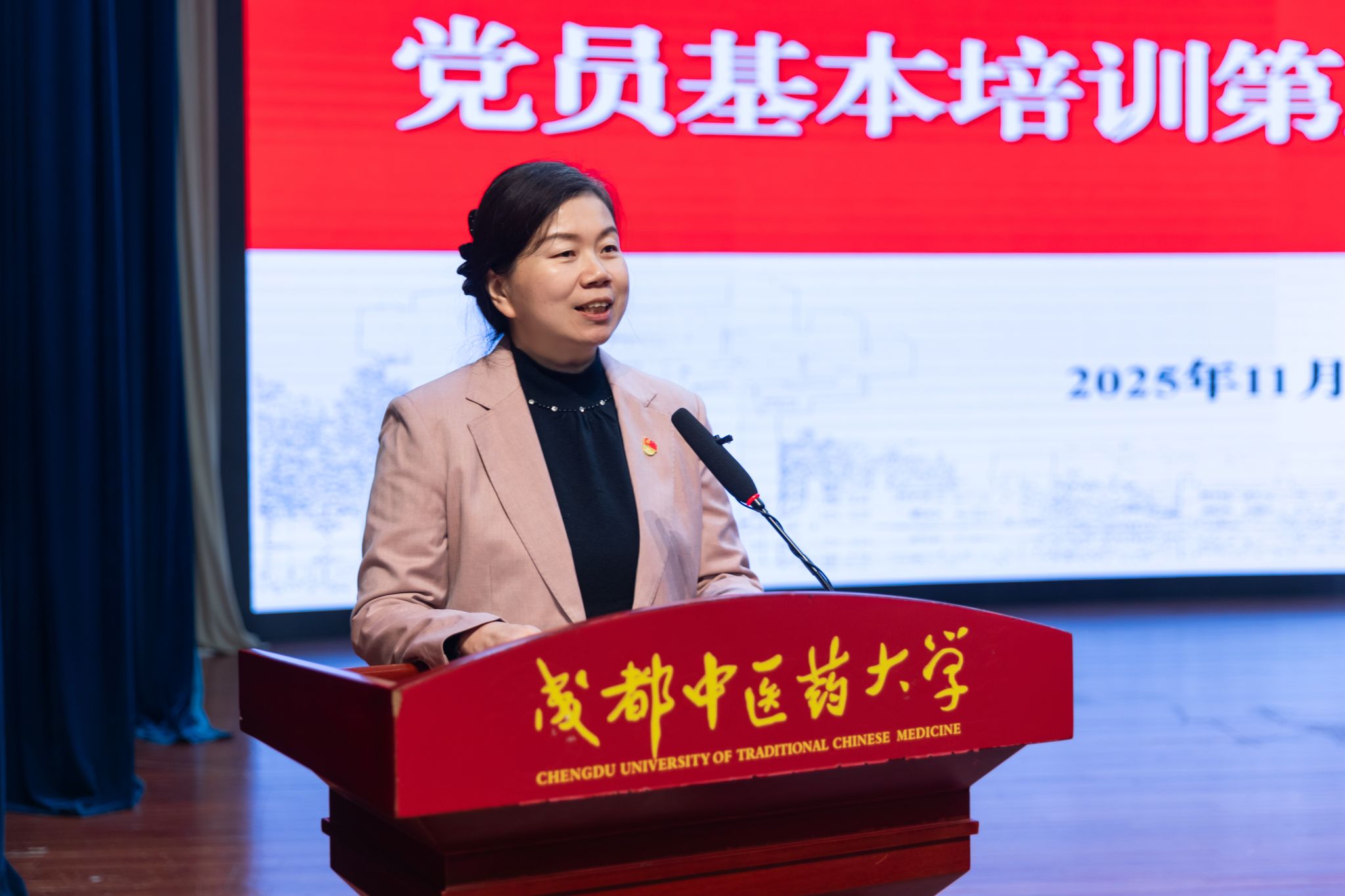 曾芳在培训开始前讲话表示,本次大课旨在引导广大党员深刻把握习近平文化思想的时代背景、核心要义与实践要求,在学思践悟中坚定文化自信、凝聚奋进力量,为学校高质量发展注入强大动能。她强调,作为中医药院校,我们更应该以“走在前、作表率”的政治自觉,将中医药文化传承创新深度融入立德树人全过程,将坚定文化自信贯穿于人才培养、科学研究、社会服务与文化传播的生动实践中。