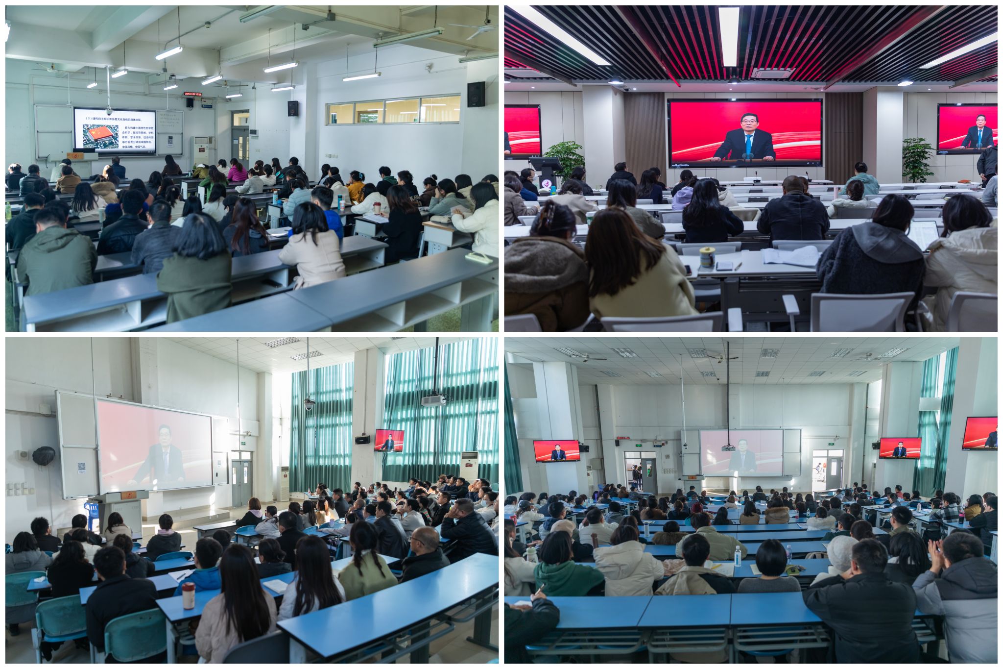 为深入学习贯彻习近平文化思想,深刻理解“两个结合”的核心要义,切实将文化自信融入办学治校全过程,11月27日下午,pp电子以“主会场+多校区分会场+线上直播”形式举行师生党员基本培训第三次集中大课。全校五千余名师生党员齐聚云端与线下,共同收看中央党校(国家行政学院)副校长(副院长)李毅作《深入学习贯彻习近平文化思想》专题报告视频。校党委副书记、校长曾芳主持培训并讲话。