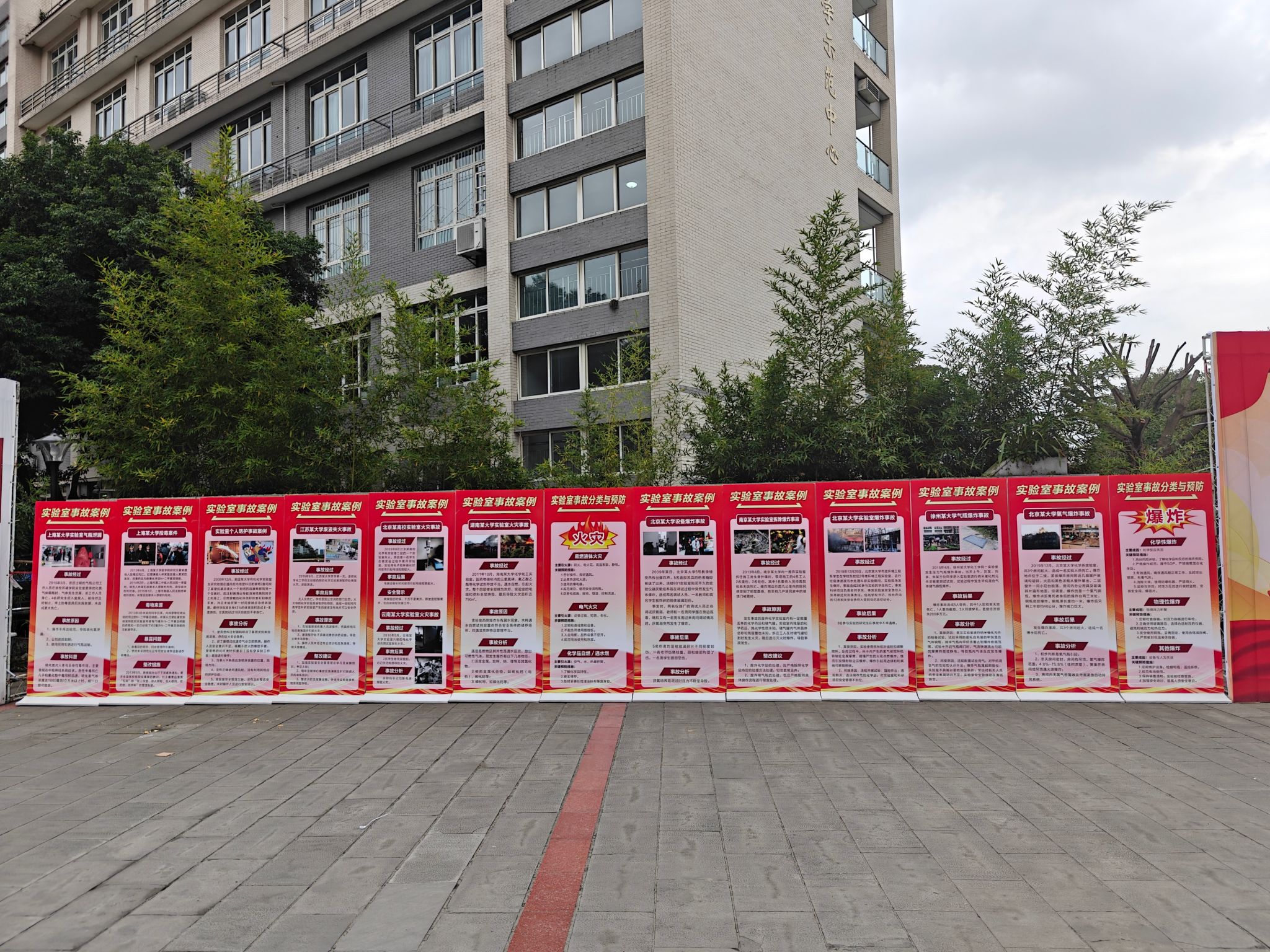 活动伊始,一场直观生动的实验室安全宣传展览在温江校区李斯炽广场亮相。系列主题展板通过图文并茂的形式、震撼警示的案例,系统展示了化学品安全、生物安全、电气安全等核心内容。制作精美的实验室安全动画在校园电子屏、公告栏广泛传播,将安全提醒融入日常环境,成功营造了“人人关注安全、人人参与安全”的校园文化氛围。