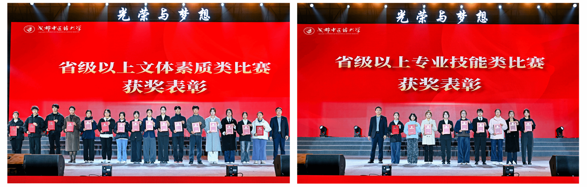12月9日,光荣的“一二·九”运动90周年当天,“与榜样同行”pp电子官方网站2025年学生表彰大会在温江校区体育馆隆重举行。共青团四川省委副书记张志君,学校党委书记张泽钧,党委副书记、校长曾芳,党委副书记杨静,党委副书记、纪委书记郑学斌,党委常委、副校长黎胜红,副校长国锦琳出席大会,相关职能部门负责人、各学院负责人和2000余名师生代表参加大会。表彰大会由党委常委、宣传部部长张希主持。