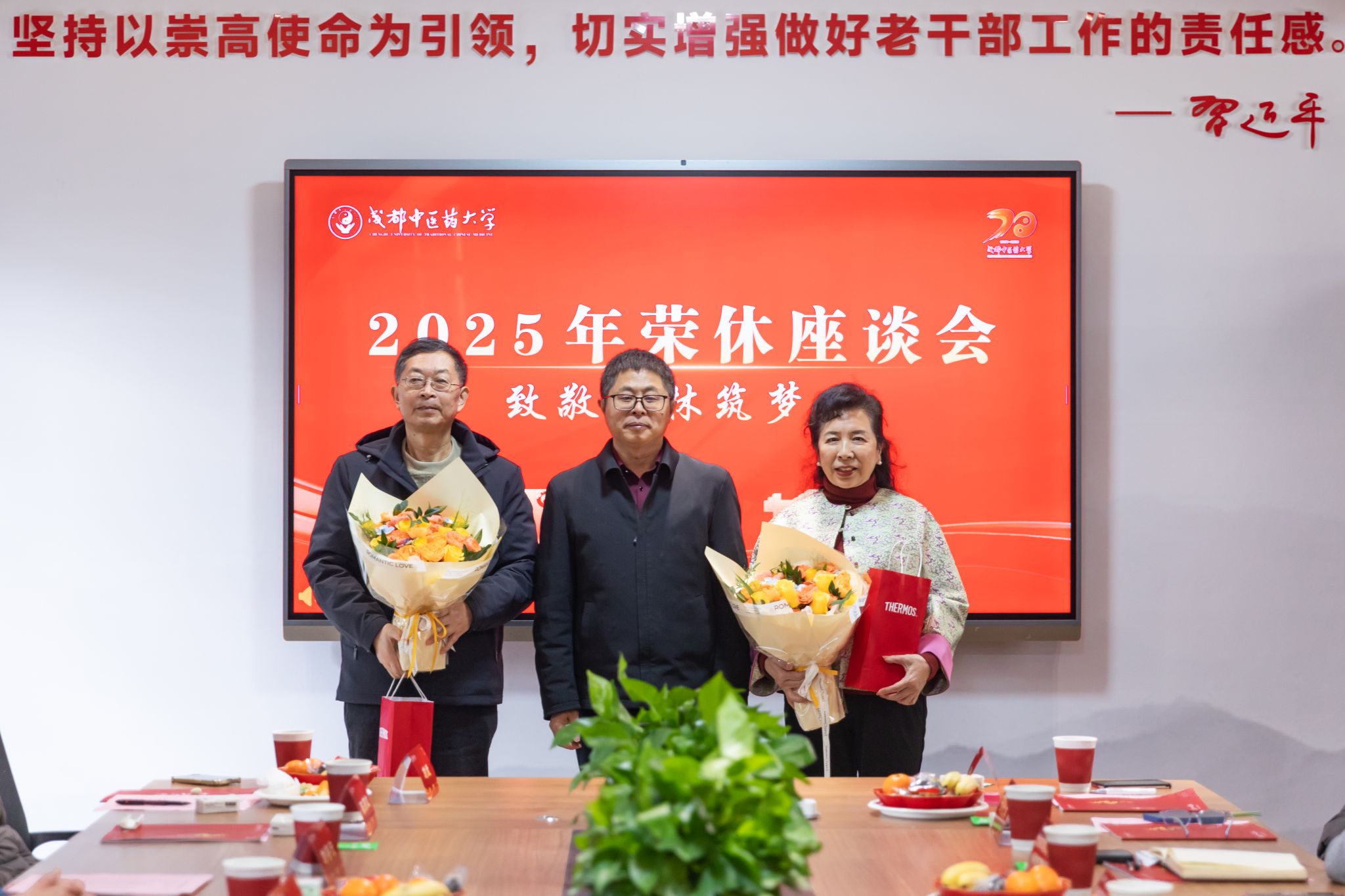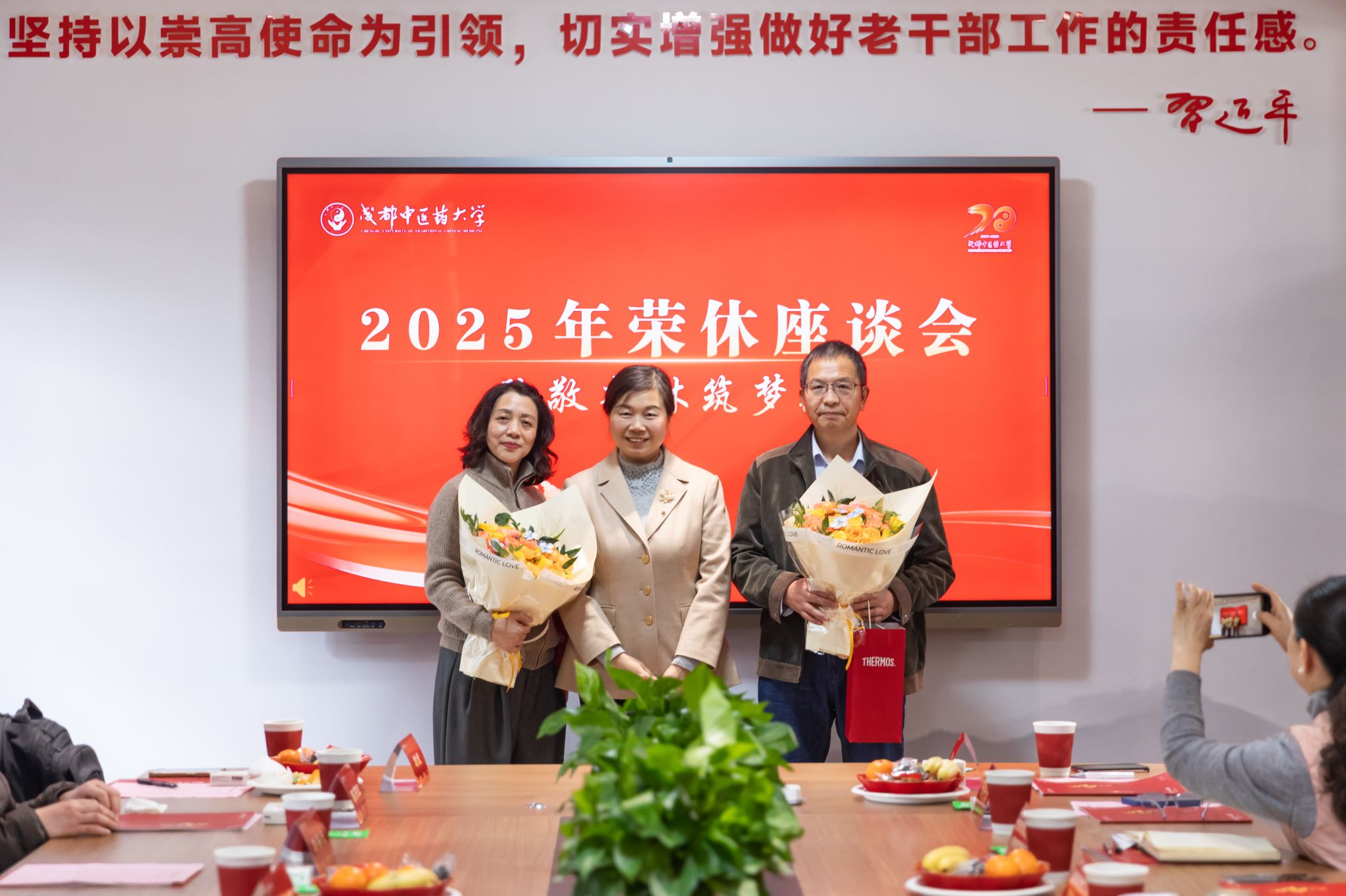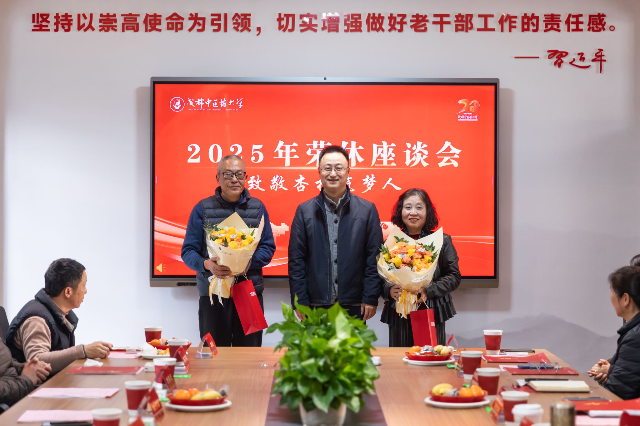 参会老师们百感交集地回顾了与学校共同成长的岁月。有的谈及执教多年,培养的学生已在各行各业焕发光彩;有的忆及成中医创业改革重要时刻,经历重重困难但勇毅克服;有的谈到历经多个部门锻炼,在成中医的发展进程中成为了更好的自己。大家纷纷表达了对学校、同事的不舍,也祝福学校事业向上、蓬勃发展。