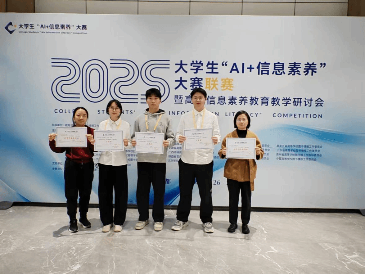 近日,2025年大学生“AI+信息素养”大赛全国联赛在成都圆满落幕。由pp电子图书馆组织指导的本科生团队(胡潇文、李映萱、黄锧),历经多轮激烈竞争,最终荣获全国联赛本科生组三等奖,图书馆张肖瑾、张洁两位老师获评优秀指导教师。