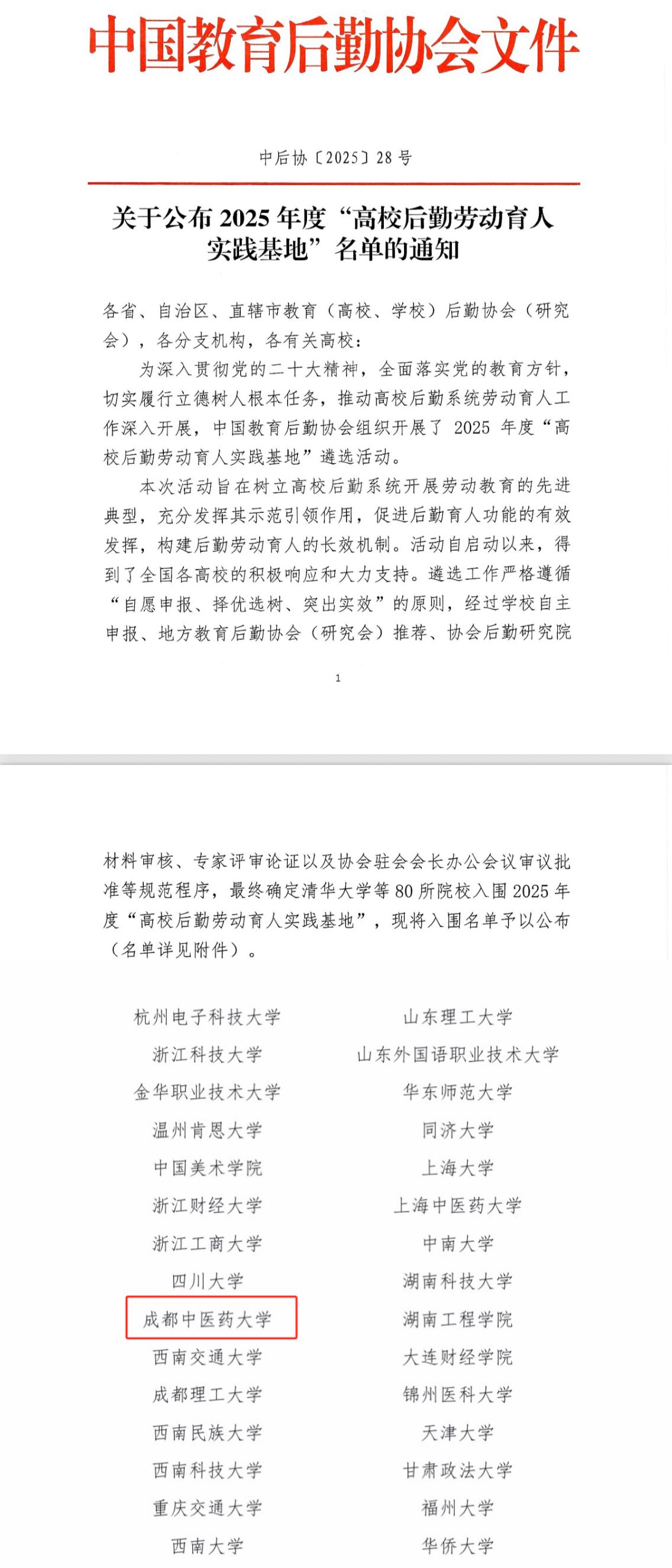近日,中国教育后勤协会公布了2025年度“高校后勤劳动育人实践基地”名单,pp电子凭借创新构建的“五维劳育”体系成功入选。