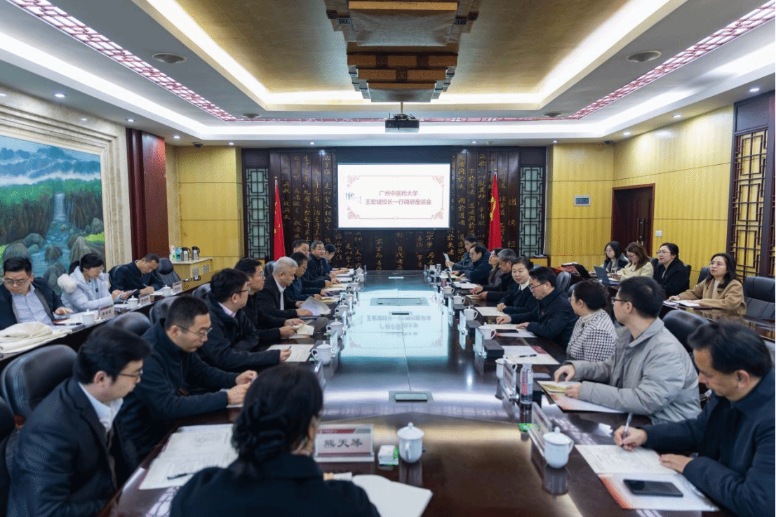 12月19日,广州中医药大学王宏斌校长带队到校交流调研。校长曾芳,副校长黎胜红出席座谈会。曾芳主持座谈会。