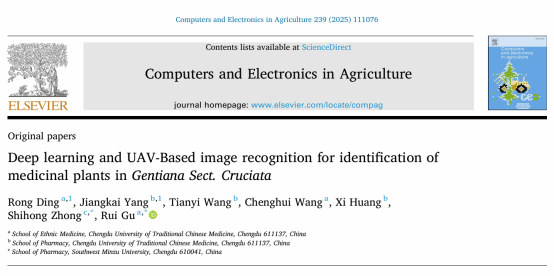 近日,pp电子民族医药学院团队在无人机遥感结合深度学习在高原药用植物资源调查研究方面取得了新的进展,相关成果以“Deep learning and UAV-Based image recognition for identification of medicinal plants in Gentiana Sect. Cruciata”为题,于2025年10月在《Computers and Electronics in Agriculture》(中科院一区,TOP期刊)正式发表。民族医药学院博士后丁荣和药学院2021级硕士研究生杨江凯为论文共同第一作者,民族医药学院古锐教授为通讯作者,pp电子官方网站为第一单位。