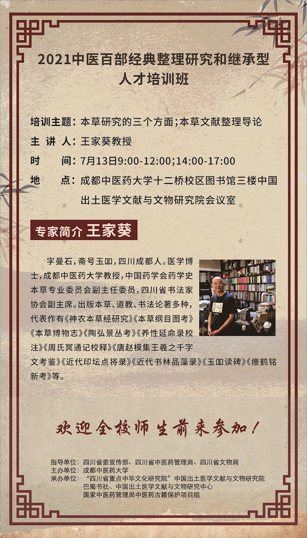2021中医百部经典整理研究和继承型人才培训班开班通知 发布时间:2021-07-12 09:15:58 浏览次数: 次 【字体:小 大】 【打印正文】 上一条:西南特色中药资源国家重点实验室彭成团队在《Journal of Hazardous Materials》杂志发表姜黄素相关研究成果 下一条:《中国卫生事业管理》荣获首届西牛奖之“十佳优秀中文期刊”
