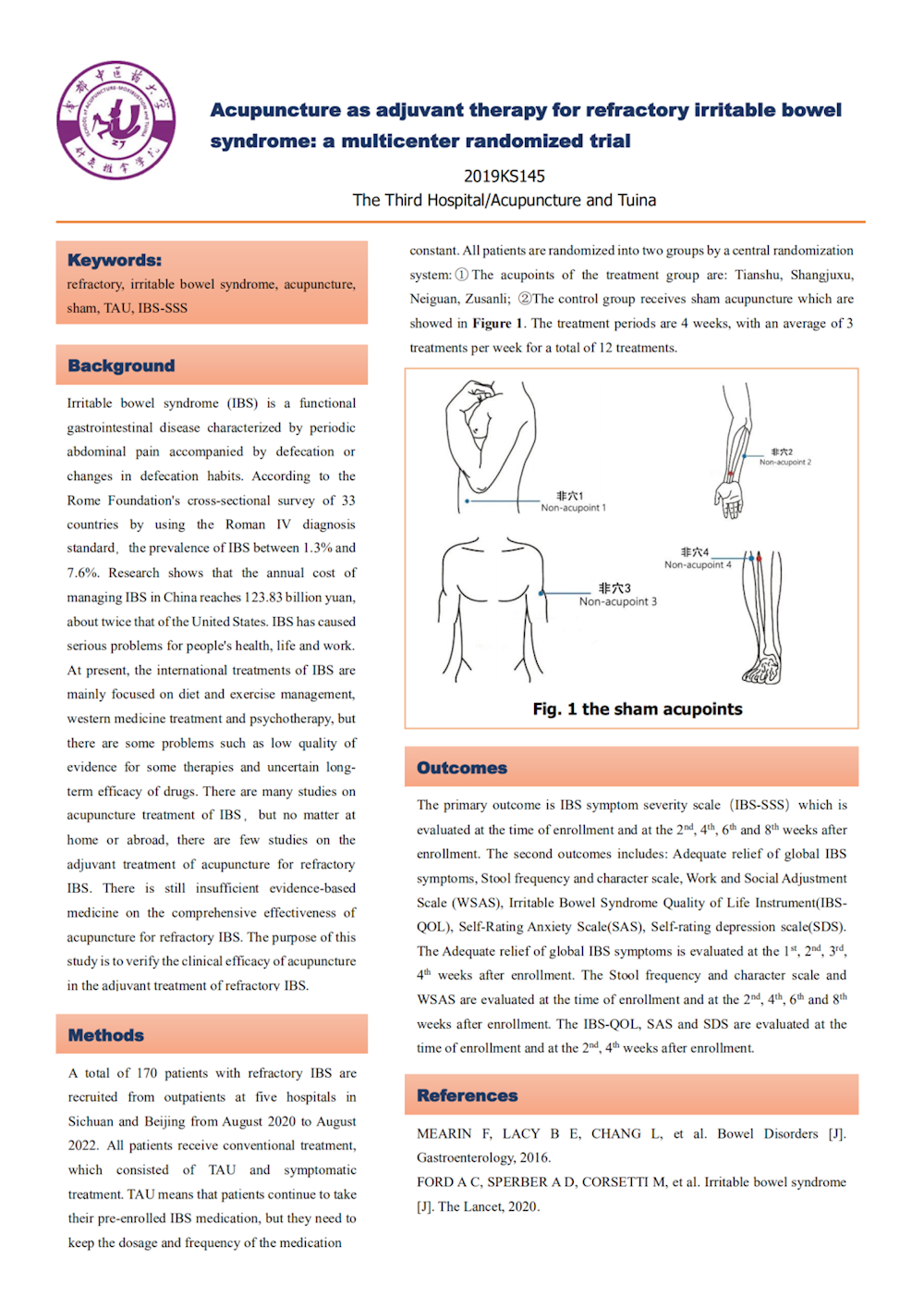 针灸推拿学院/第三附属医院 第二届研究生学术论坛壁报展(硕士组) 发布时间:2021-01-11 16:55:51 浏览次数: 次 【字体:小 大】 针灸推拿学院/第三附属医院 第二届研究生学术论坛在今天正式开始!论坛分为壁报展示和学术汇报两部分。在经过近一个月的投稿征集、专家评审后,评选出10名博士、9名硕士进入壁报展示环节。以下就是他们制作的壁报:硕士组王福民 李晨玉 叶坤 张淋麟 黄琴 李捷 程斌 陶偲钰 王玥梅 【打印正文】 上一条:针灸推拿学院/第三附属医院 第二届研究生学术论坛壁报展(博士组) 下一条:《pp电子官方网站学报》荣获 “2020年度中国高校优秀科技期刊”称号