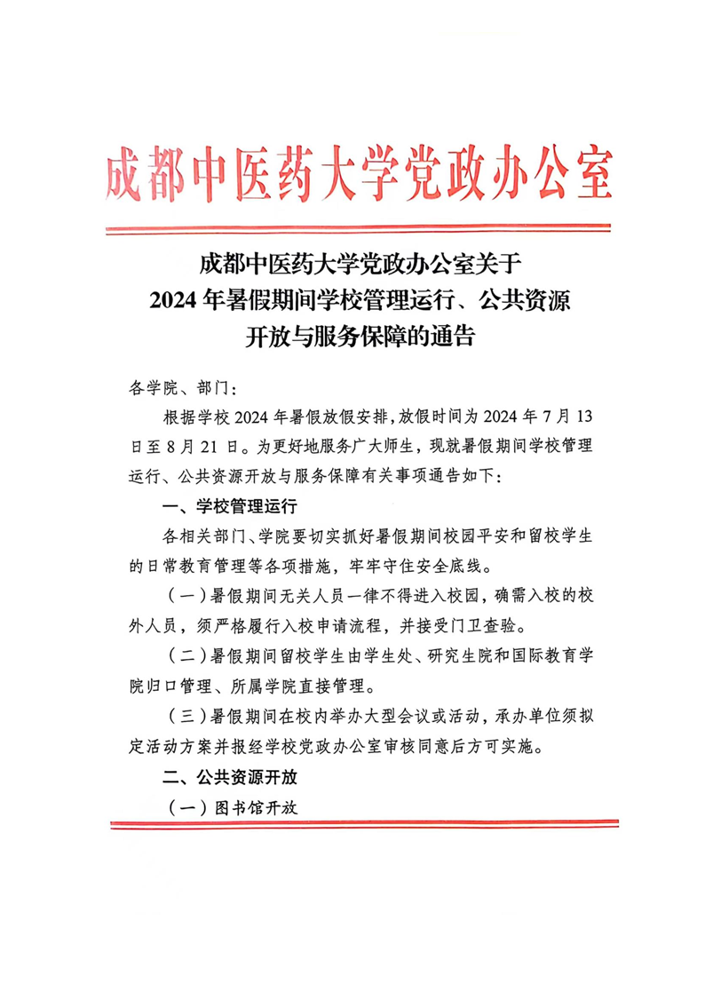 pp电子官方网站党政办公室关于2024年暑假期间学校管理运行、公共资源开放与服务保障的通告 发布时间:2024-07-11 15:53:07 浏览次数: 次 【字体:小 大】 【打印正文】 上一条:关于学校公共资源开放与服务保障时间调整的通知 下一条:pp电子官方网站关于2024年暑假放假时间和调整作息时间的通知