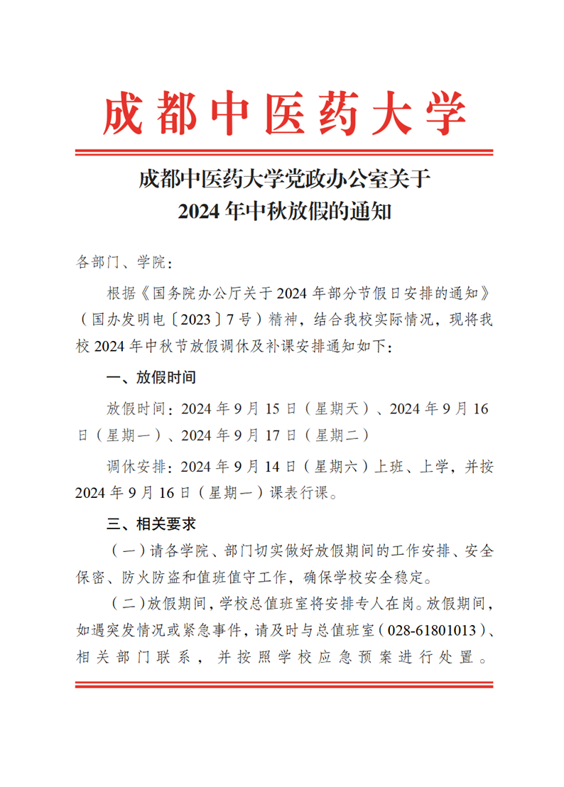 pp电子官方网站党政办公室关于2024年中秋放假的通知 发布时间:2024-09-10 15:11:15 浏览次数: 次 【字体:小 大】 【打印正文】 上一条:关于进行防空警报试鸣演练的通知 下一条:关于学校公共资源开放与服务保障时间调整的通知