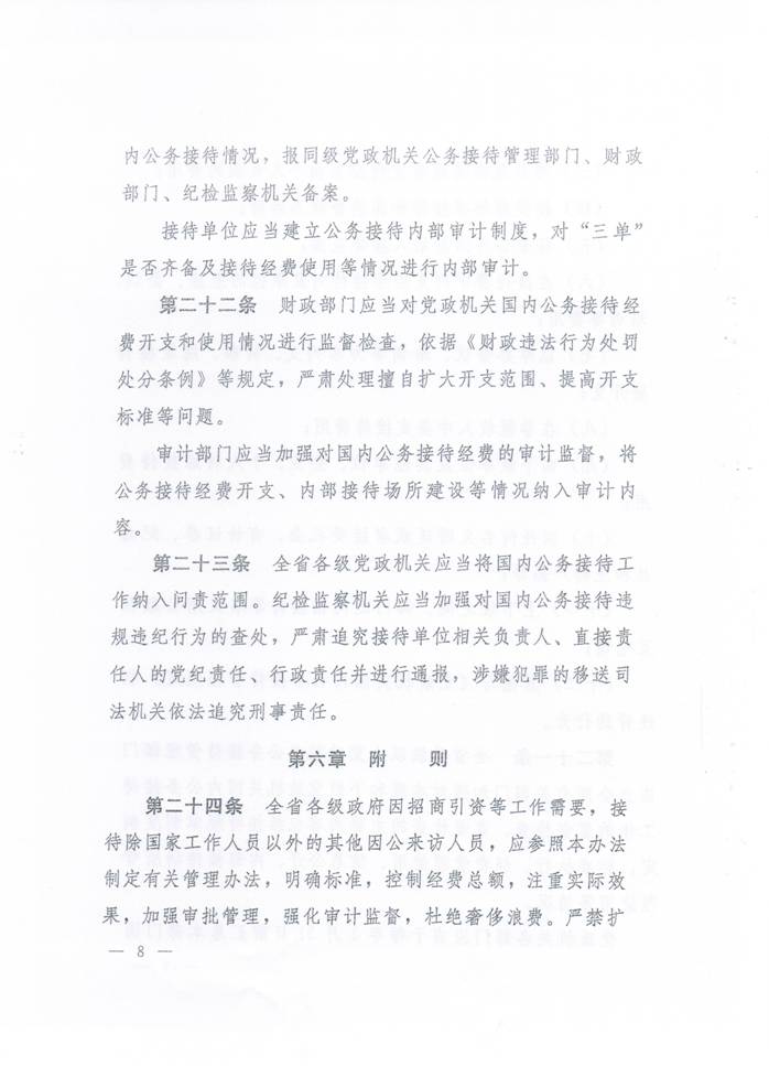 川委办〔2014〕11号-中共四川省委办公厅 四川省人民政府办公厅关于印发《四川省党政机关国内公务接待管理办法》的通知. 发布时间:2014-04-14 15:43:00 浏览次数: 次 【字体:小 大】 【打印正文】 上一条:关于实行校园临时交通管制的通告 下一条:计划财务处办理业务时间