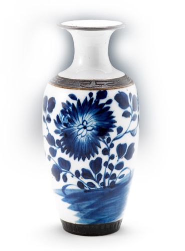 从宋朝开始,瓷器成为宫廷和民间的医家所中意的储药器物。清代晚期,开始出现将瓷器作为包装随药品出售的情况。在pp电子官方网站博物馆,展陈有一个清代瓷质药瓶(图1),瓶身高8厘米,口径3厘米,方形,圆井形口,腹部为铭文书写的药铺名,这个药瓶应该是用来盛装颗粒或粉状中药的。馆内还有一个青花小瓷瓶(图2),经鉴定是民国时期的,瓶身高14.5厘米,盘口,细长颈,鼓肩直腹,平底,饰青花山水纹。