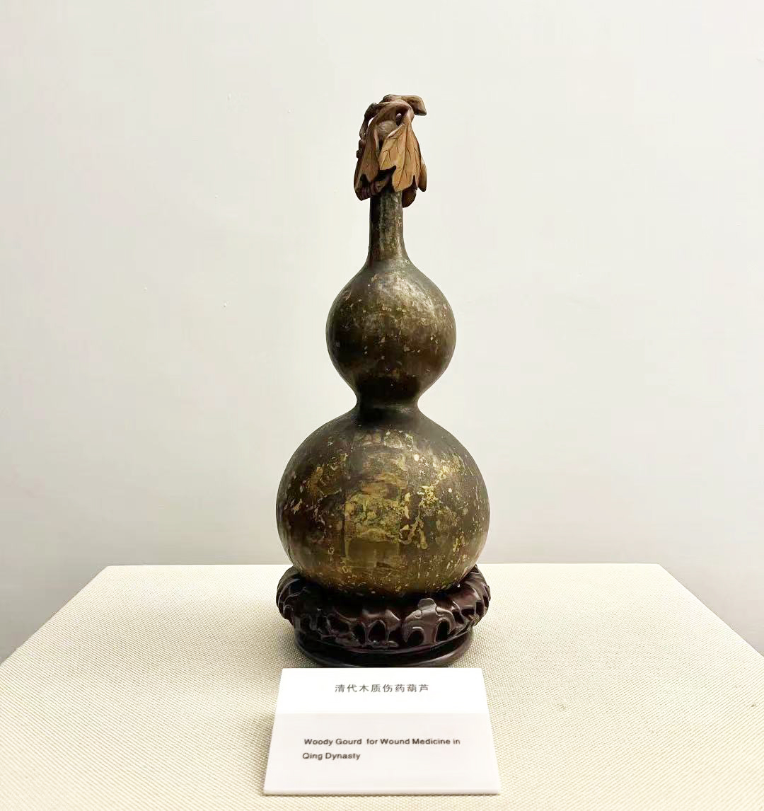 成都中医药博物馆收藏的清代木质伤药葫芦。
