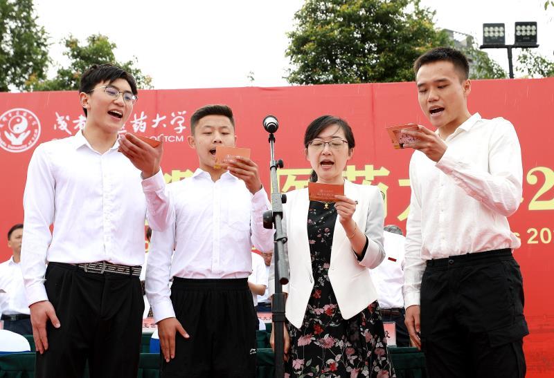 随后,十五名各学院本科学生代表与一名研究生代表上台,在pp电子官方网站针灸推拿学院/第三附属医院副院长赵凌的带领下,齐诵药王孙思邈所著的《大医精诚》。
