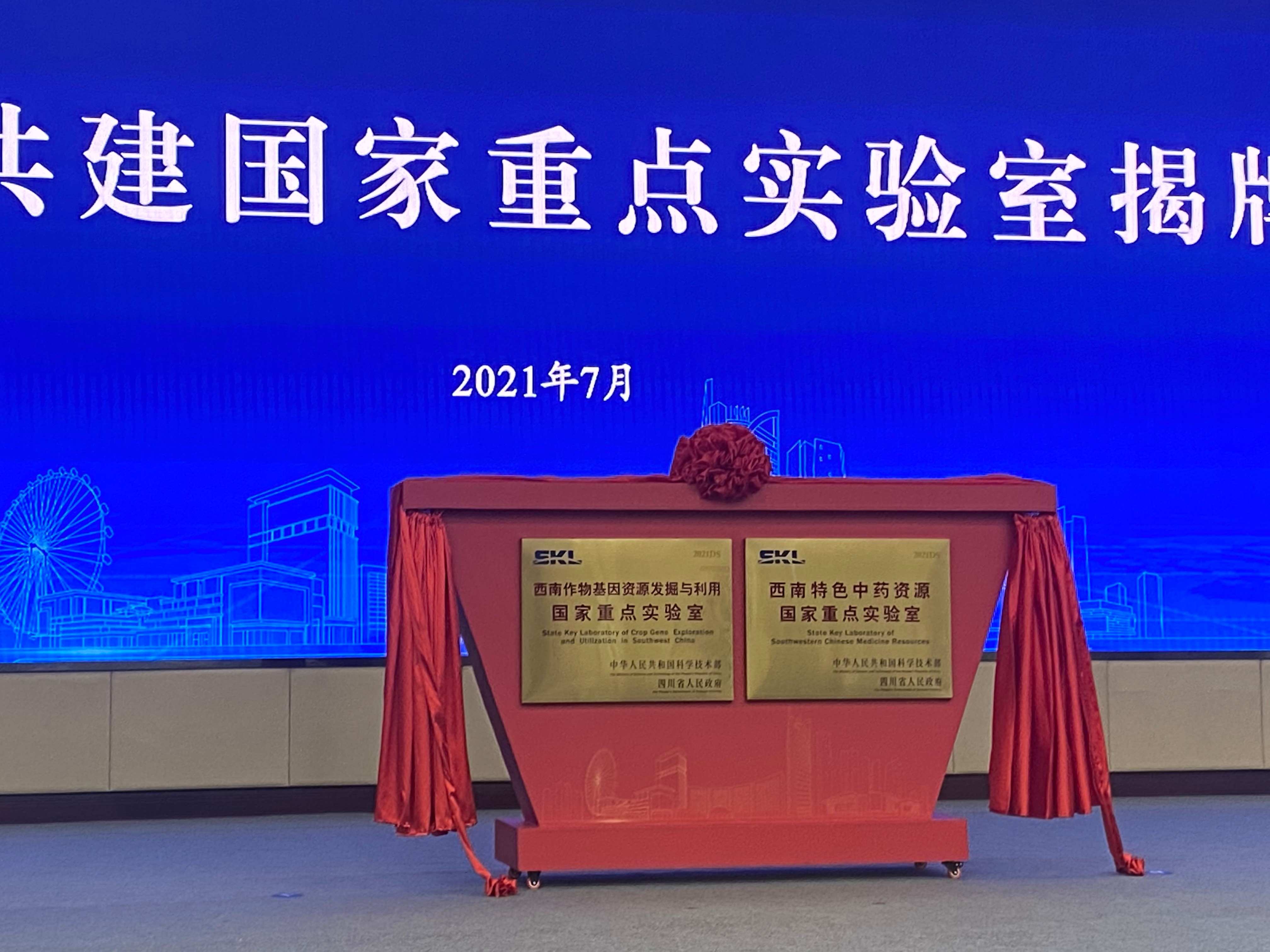 活动现场宣读了《科技部办公厅关于批准建设省部共建西南作物基因资源发掘与利用、西南特色中药资源国家重点实验室的通知》,两所同于今年1月获科技部批准建设的国家重点实验室在现场揭牌。