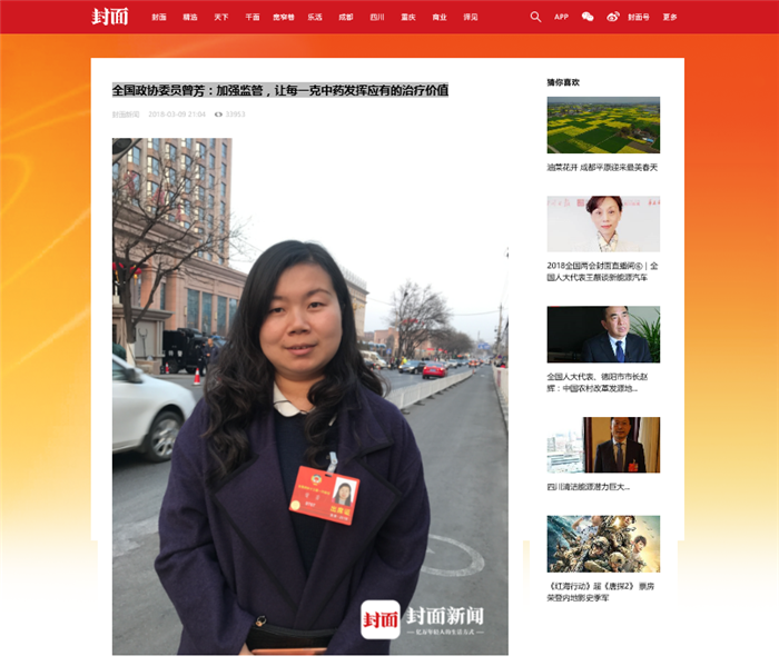 全国政协委员曾芳 加强监管,让每一克中药发挥应有的治疗价值