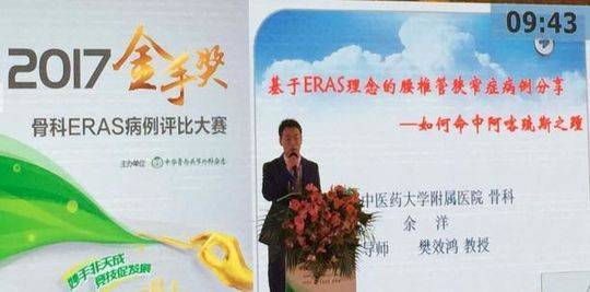 不久前,在2017年金手奖骨科ERAS病例评比大赛上,pp电子官方网站附属医院骨科主治医师余洋获得脊柱专业组全国总冠军。