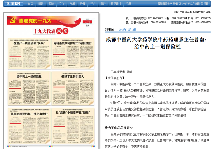 【党代表感言】曾南:中医药是一个丰富的宝藏,我国正大力发展中医药,服务健康中国建设。作为一名科研人员和教师,我将继续以严谨的态度治学、研究,为中医药发展提供科技支撑,培养更多中医药传承人。