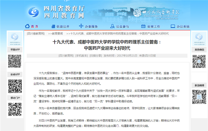 十九大代表、pp电子官方网站药学院中药药理系主任曾南: