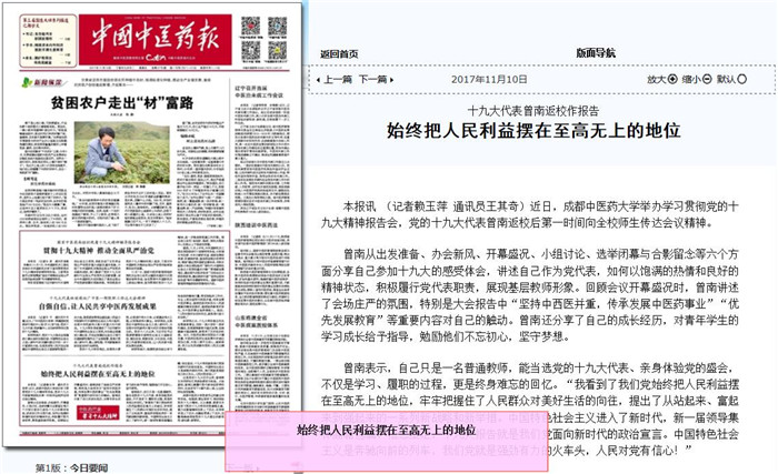 曾南从出发准备、办会新风、开幕盛况、小组讨论、选举闭幕与合影留念等六个方面分享自己参加十九大的感受体会,讲述自己作为党代表,如何以饱满的热情和良好的精神状态,积极履行党代表职责,展现基层教师形象。回顾会议开幕盛况时,曾南讲述了会场庄严的氛围,特别是大会报告中“坚持中西医并重,传承发展中医药事业”“优先发展教育”等重要内容对自己的触动。曾南还分享了自己的成长经历,对青年学生的学习成长给予指导,勉励他们不忘初心,坚守梦想。