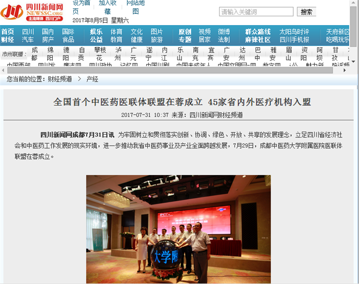 四川新闻网成都7月31日讯 为牢固树立和贯彻落实创新、协调、绿色、开放、共享的发展理念,立足四川省经济社会和中医药工作发展的现实环境,进一步推动我省中医药事业及产业全面跨越发展,7月29日,pp电子官方网站附属医院医联体联盟在蓉成立。